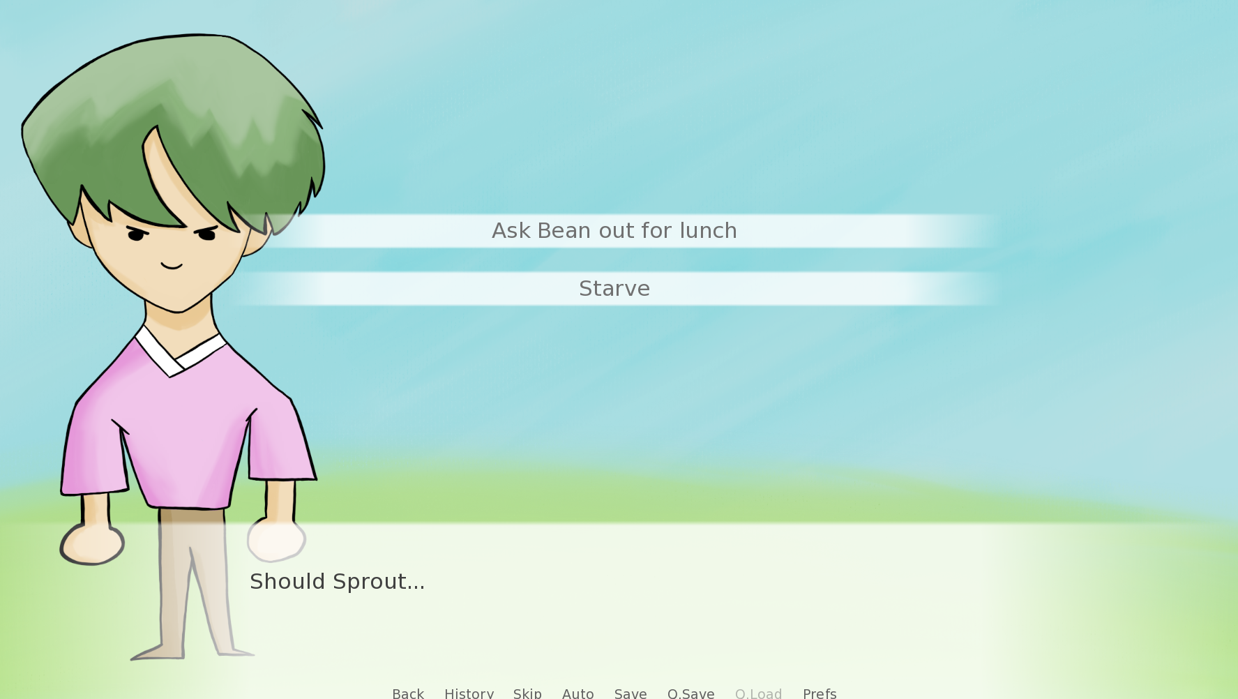 Short visual novel where you explore the dialogue between the two protagonists, Bean and Sprout :D